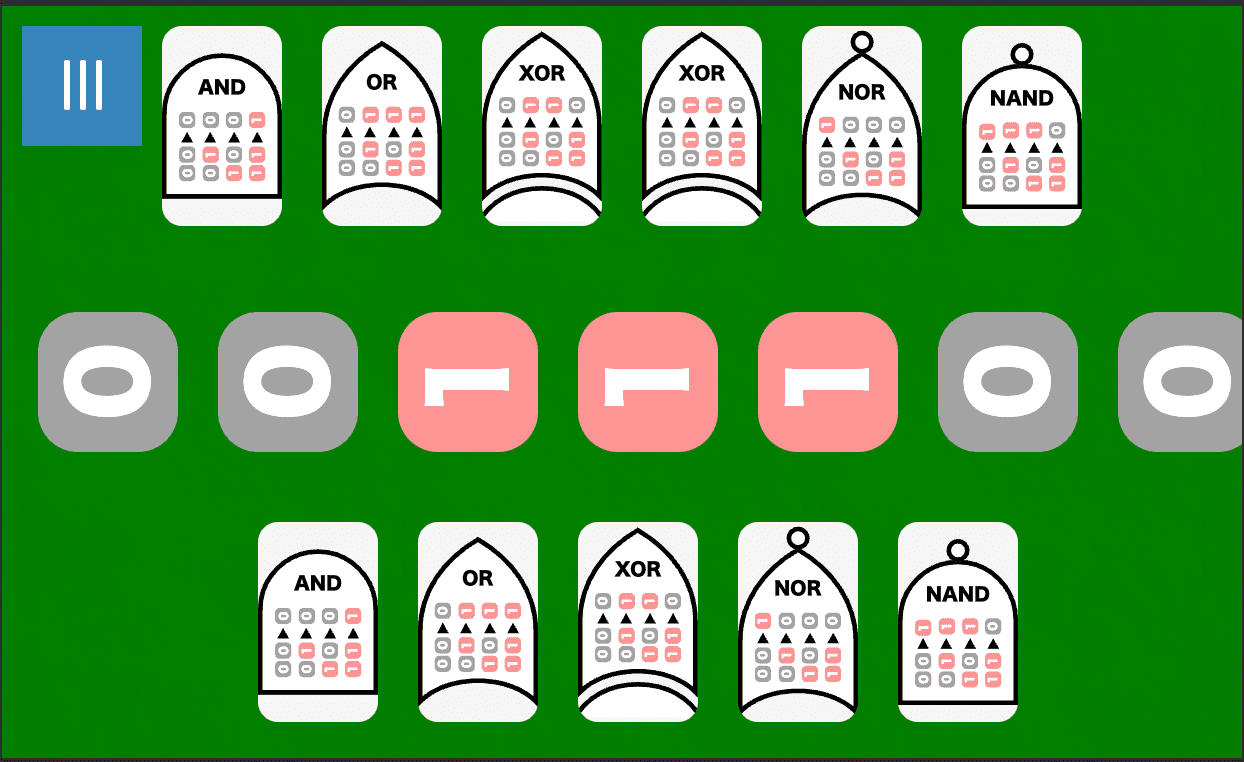 ボードゲームで遊んでEEICの学習内容の一端に触れよう! 基本となるのは0と1の組をルールに従って別の値にかえること。パソコンの中で動いている0と1のルールを遊びながら学ぶことができます。